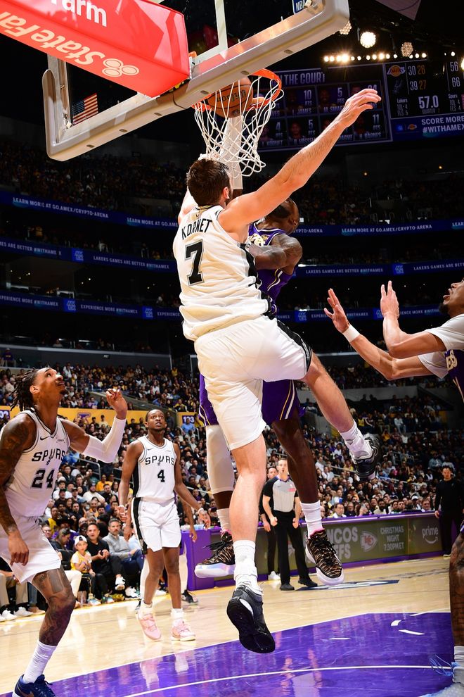 盡管球隊失利,但詹姆斯個人的競技狀態(tài)卻綻放出耀眼的光芒。過去兩場比賽,他場均貢獻24分,而且還有非常炸裂的隔扣和提升士氣加拯救回合的追帽。對于一個處于生涯第23個賽季、即將年滿41歲的老將而言,這樣的身體表現(xiàn)幾乎違背了運動規(guī)律。連馬刺隨隊記者都感嘆親眼見證其扣籃時,都表示第一次現(xiàn)場看詹姆斯海報扣籃,難以置信“他還能這樣飛”。詹姆斯在這場比賽還被惡犯不止一次,一次是勾腳,一次是打頭。但他依然毫無保留地投入競爭,這份對身體極限的挑戰(zhàn)與對比賽純粹的熱愛,超越了勝負本身。