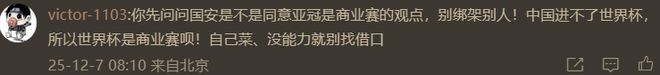 在陳華這動態(tài)的下面,有北京球迷表示不認同(上圖),寫道:“你先問問國安是不是同意亞冠是商業(yè)賽的觀點,別綁架別人!中國進不了世界杯,所以世界杯是商業(yè)賽唄!自己菜、沒能力就別找借口。”看來,國安球迷也有明事理不喜歡被忽悠的。