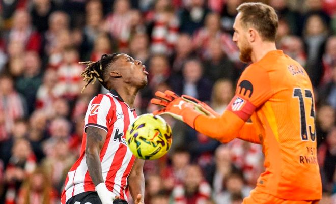 比賽剛開始不久,桑切特在禁區(qū)內(nèi)頭球攻門,皮球稍稍偏出右側(cè)立柱。8分鐘后,古魯澤塔在禁區(qū)中路包抄低射,踢偏了。隨后,阿爾馬達的凌空抽射被門將神奇化解。第22分鐘,尼科-威廉斯在禁區(qū)前沿兜射遠角,踢偏了。第33分鐘,拉波爾特受傷無法堅持被換下場。維維安替補上場。半場結(jié)束,比分依然是0-0。