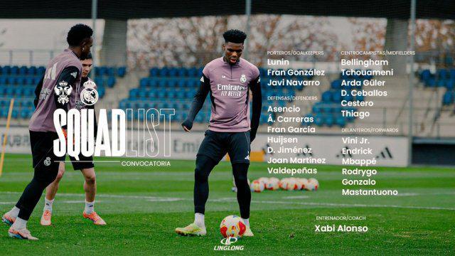 國(guó)王杯第3輪,皇家馬德里客戰(zhàn)塔拉韋拉。白衣軍團(tuán)公布大名單。姆巴佩與巴西雙星領(lǐng)銜鋒線,庫爾圖瓦缺席。 皇馬大名單 門將:盧寧、弗蘭·岡薩雷斯、哈維·納瓦羅 后衛(wèi):勞爾·阿森西奧、阿爾瓦羅·卡雷拉斯、弗蘭·加西亞、懷森、戴維·希門尼斯、霍安·馬丁內(nèi)斯、巴爾德佩尼亞斯 中場(chǎng):貝林厄姆、楚阿梅尼、居萊爾、塞瓦略斯、塞斯特羅、蒂亞戈·皮塔奇 前鋒:維尼修斯、恩德里克、姆巴佩、羅德里戈、貢薩洛·加西亞、馬斯坦托諾